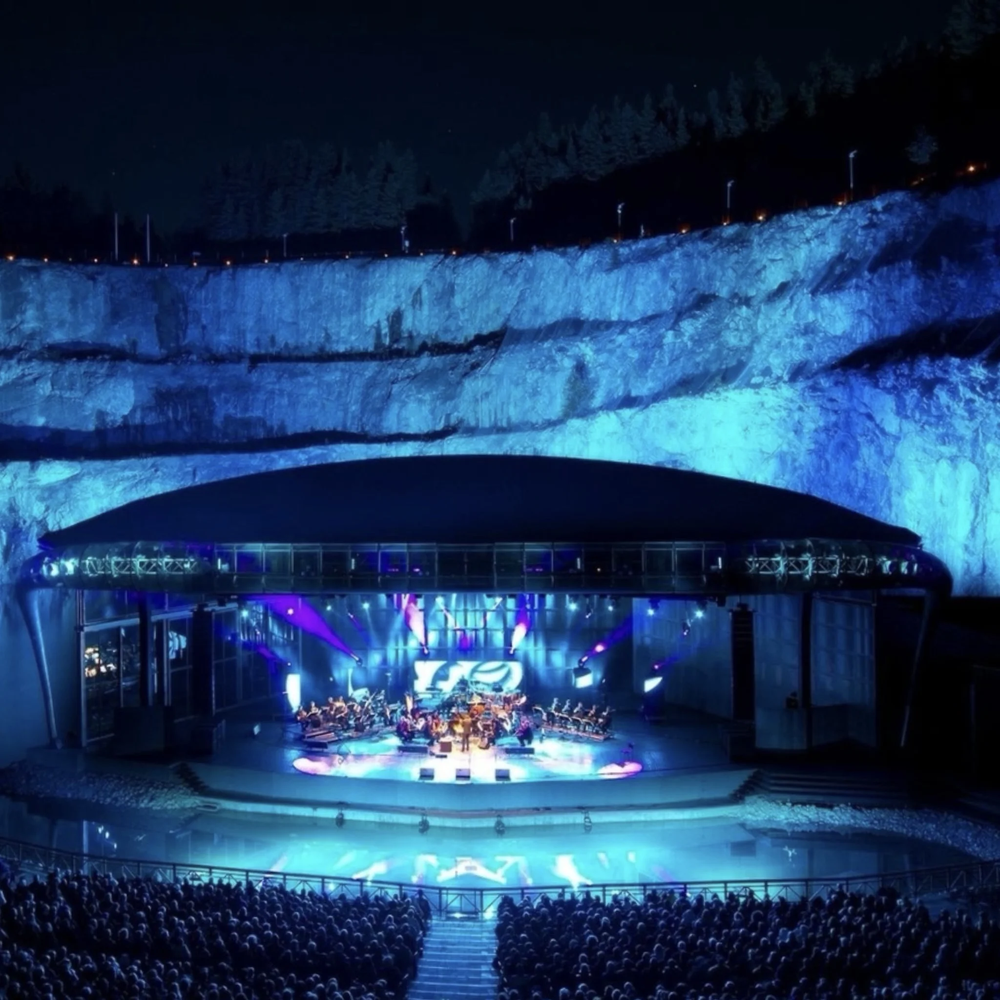 Umgeben von steilen Felswänden unter freiem Himmel erleben Sie Filmklassiker von Star Wars bis James Bond, gespielt vom Symphonieorchester Dalasinfoniettan.