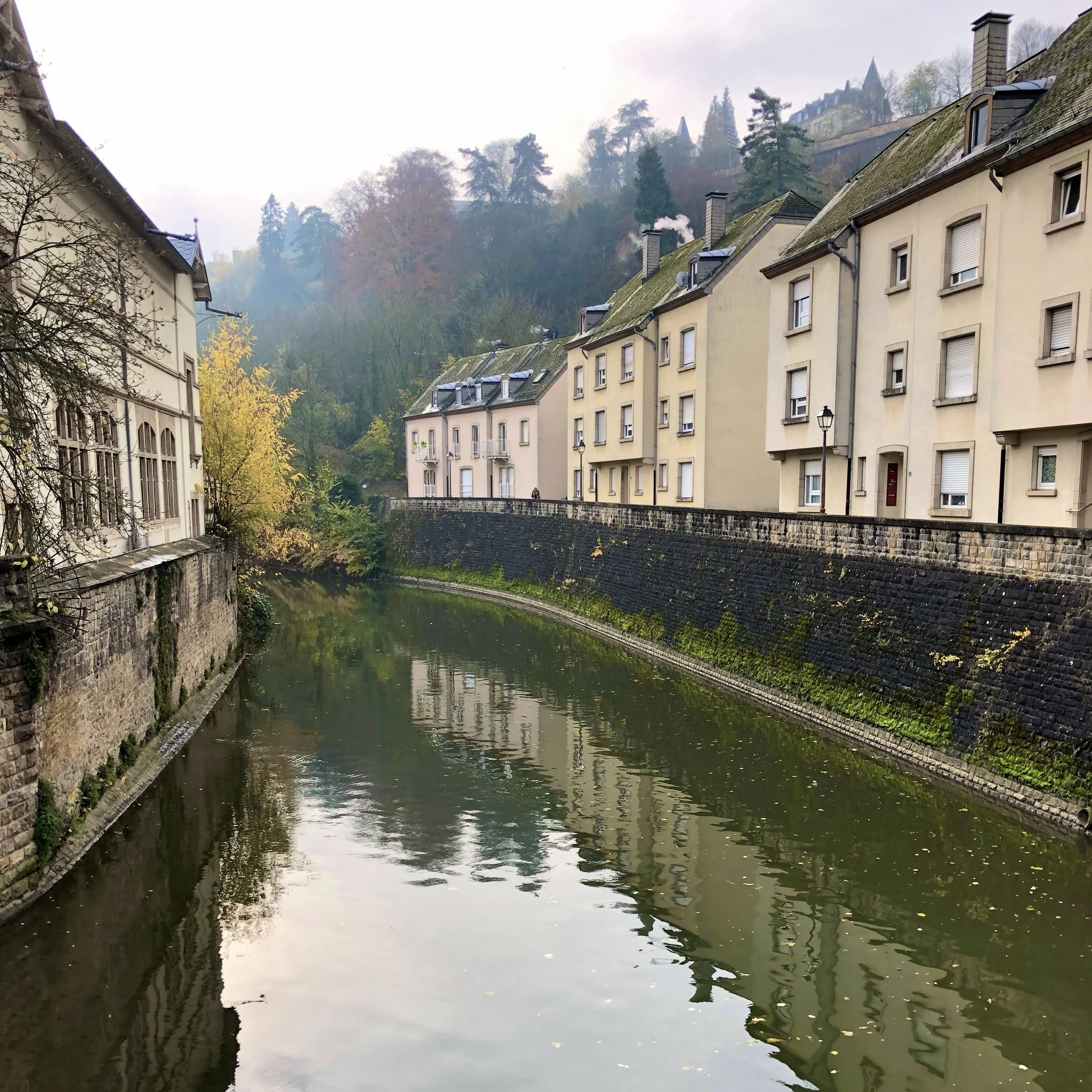 the Alzette flows past rows of old houses.