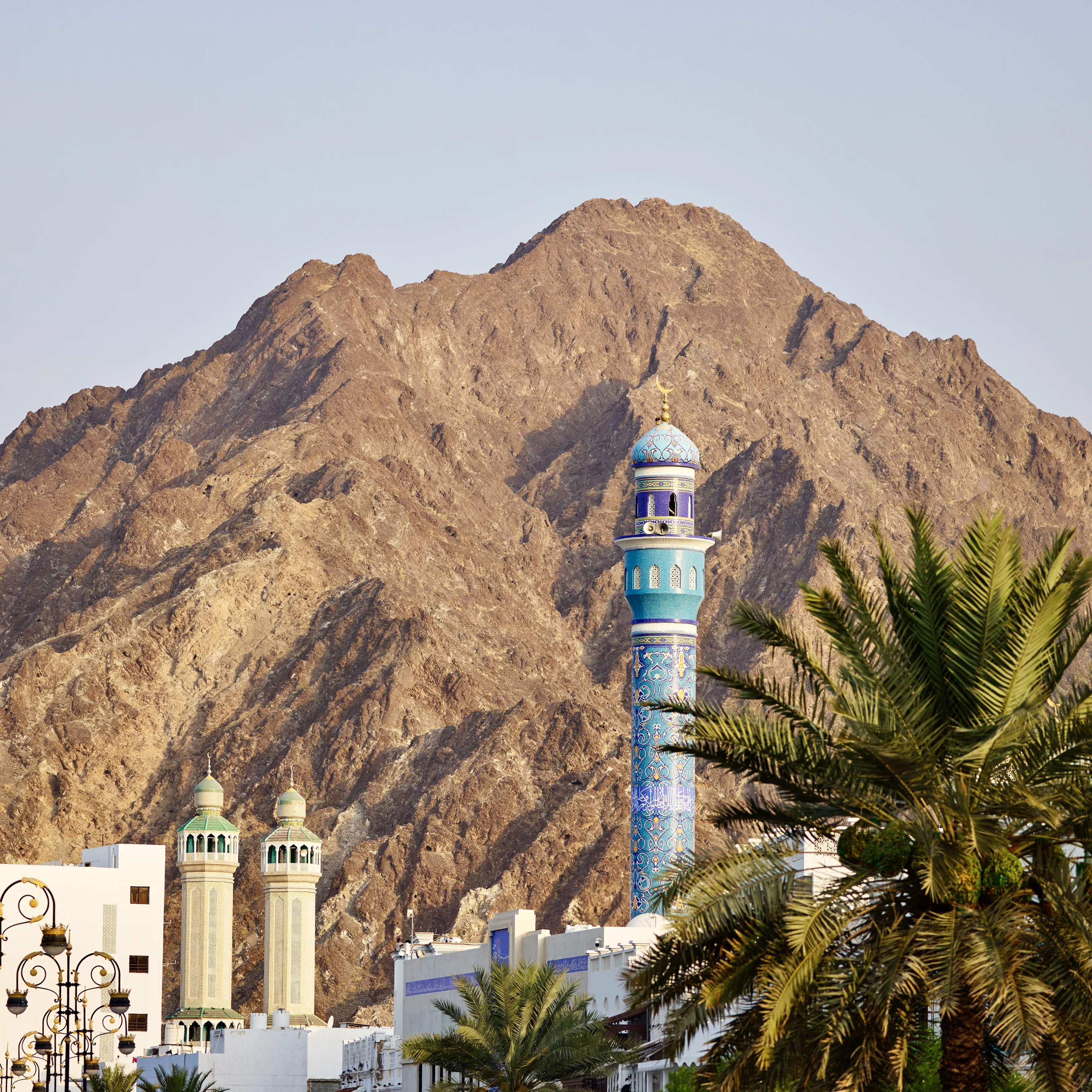 Daily distance of approximately 400 kilometres across the western Hajar Mountains. Photo stop in the village of Bilad Sayt with terraced fields and date palms, continuing through Wadi Bani Awf with its striking rock faces. In Nakhal, visit the fort and the hot springs in the oasis. Return to Muscat. Overnight stay at the Mandarin Oriental, Muscat, including breakfast.
